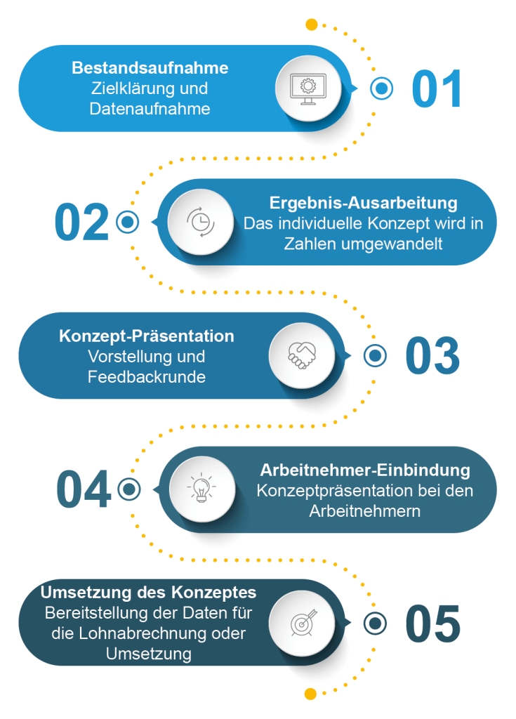 Wir entwickeln individuelle Vergütungskonzepte, die die Bedürfnisse und Motivationen Ihrer Mitarbeiter berücksichtigen – für maximalen Nutzen ohne Mehrkosten.